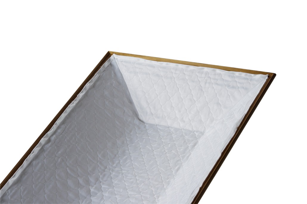 Våre kister har båtform, som innebærer at kistene er bredere øverst enn nederst.